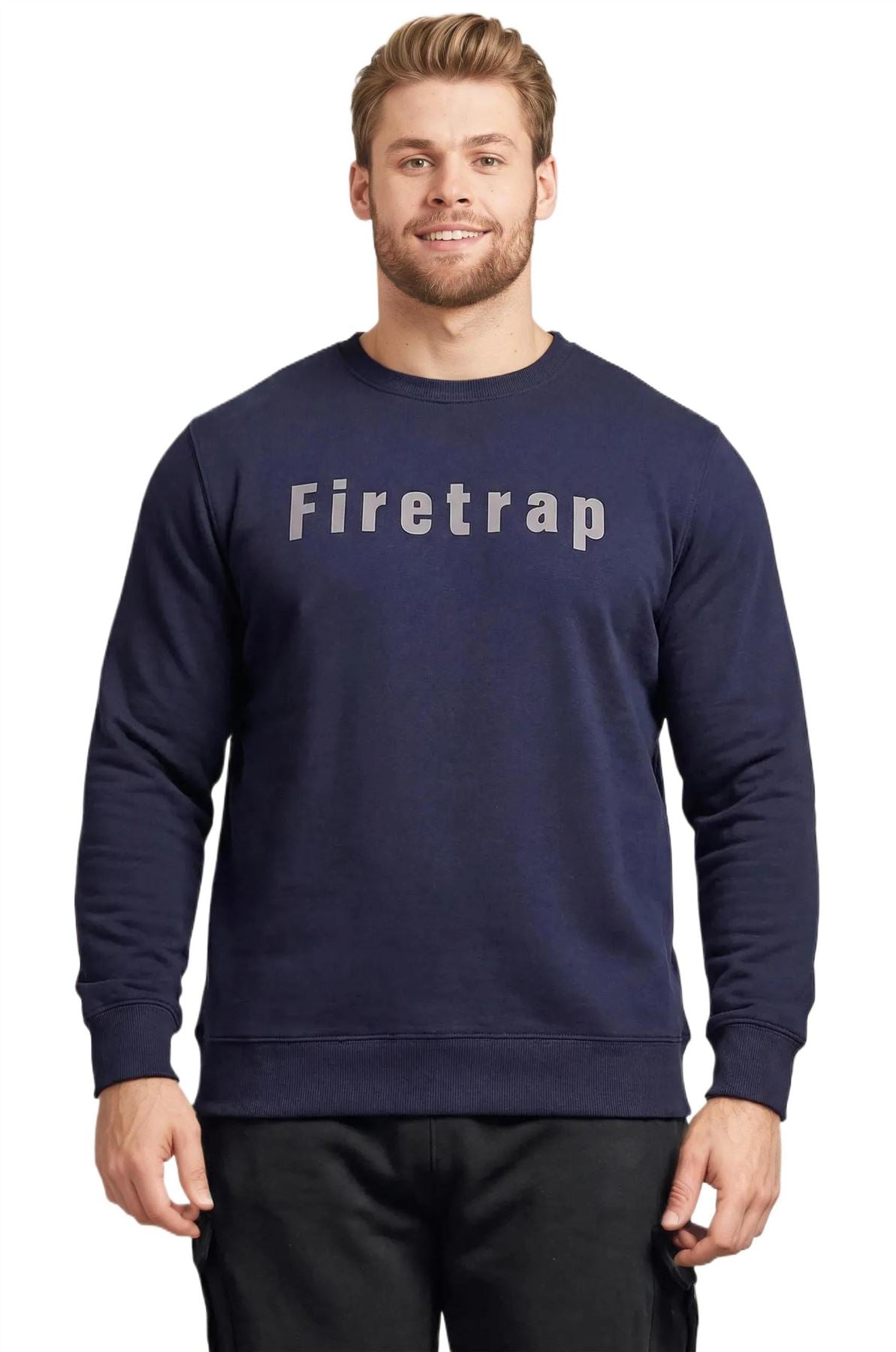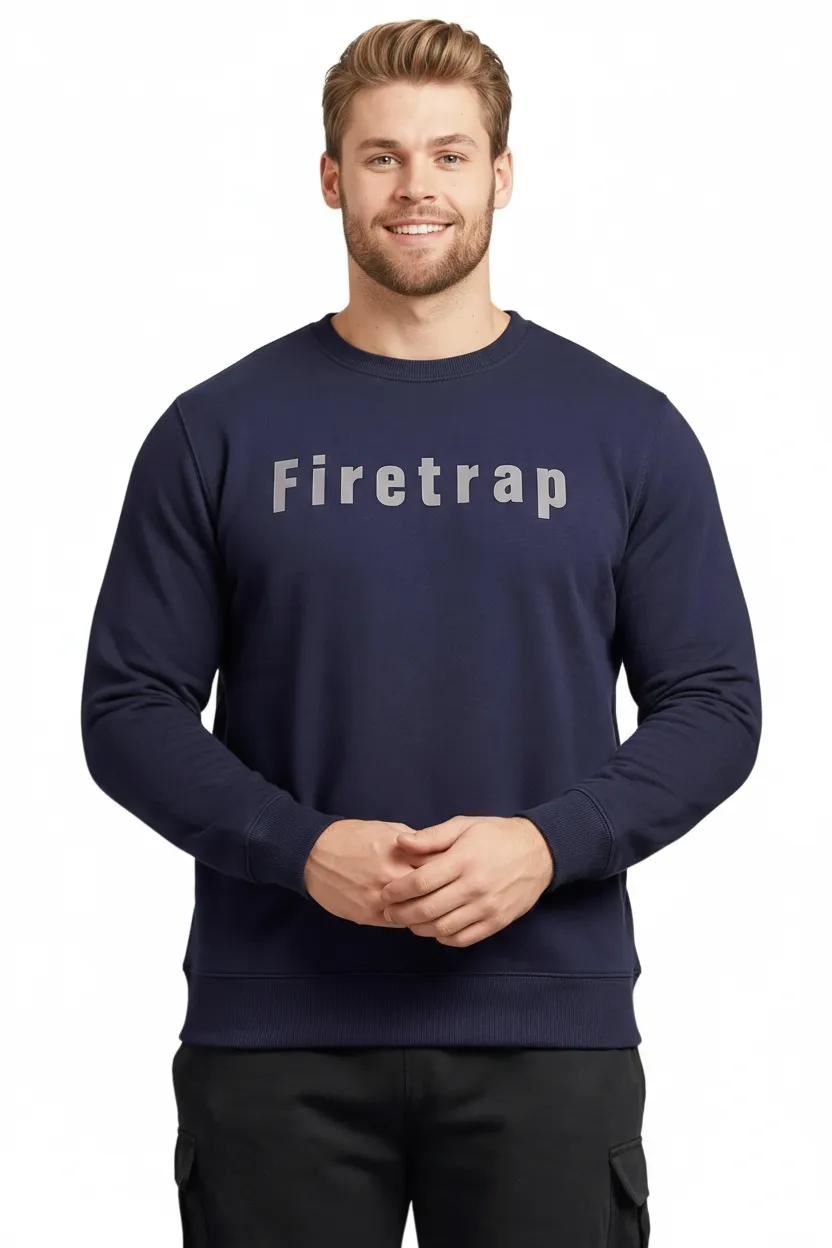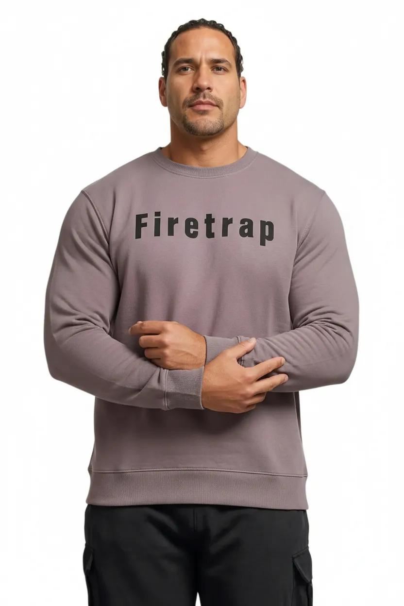 Firetrap Mens Big & Tall Graphic Crew Neck Sweatshirt Long sleeve casual pullover jumper with bold Firetrap logo print, oversized fit men sweatshirt, perfect sweatshirts for men and mens jumpers.