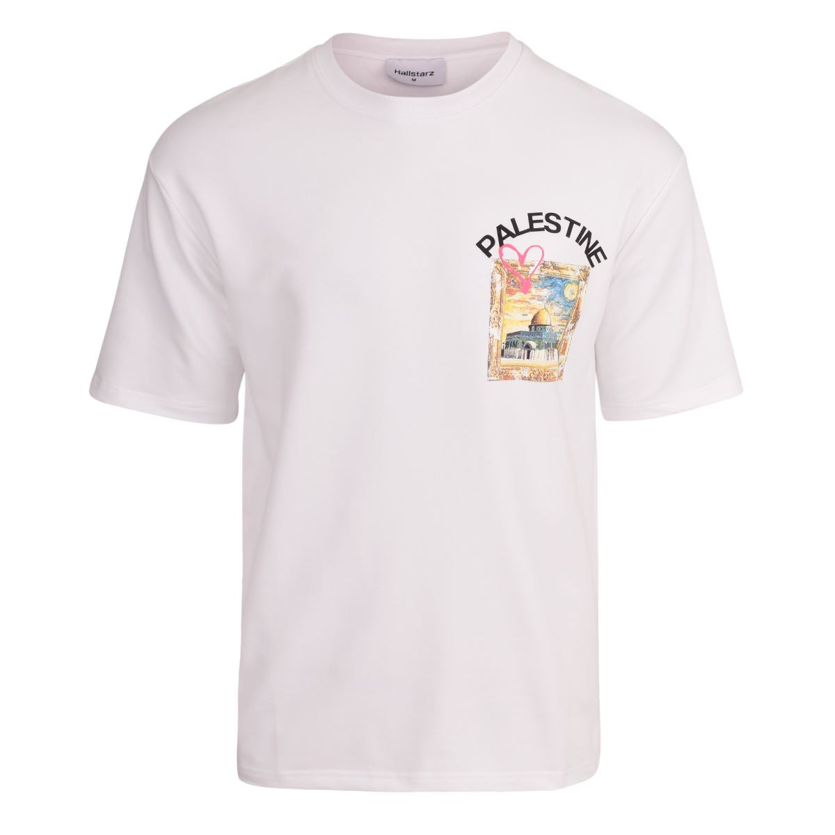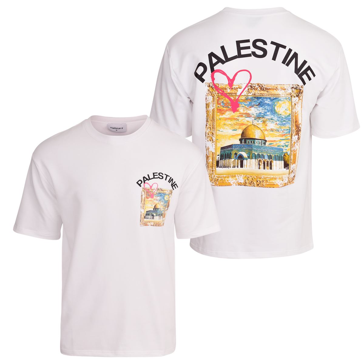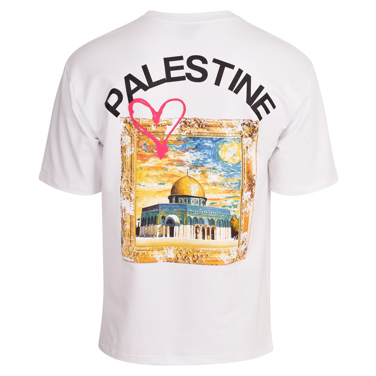 Show your support with this eye-catching graphic tee featuring the iconic Dome of the Rock and heart design.